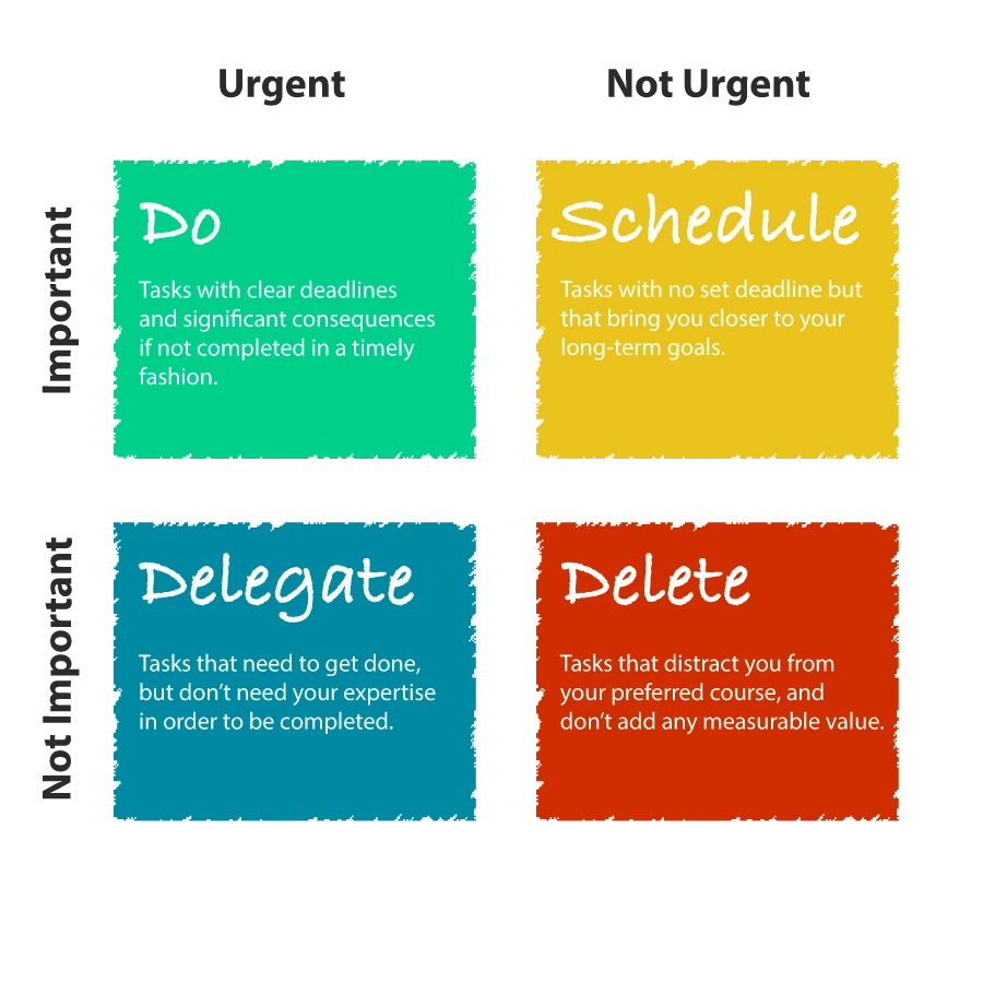 The Eisenhower Matrix helps manage tasks by dividing them into four categories: Do First (Urgent & Important): Handle crises and